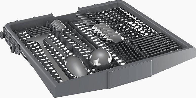 Az evőeszköz tálca elegendő helyet biztosít az evőeszközök és az apróbb dolgok elhelyezésére és saját permetezési szinttel is rendelkezik. Ennek köszönhetően az alsó kosárban több hely szabadul fel a nagyobb edények számára.